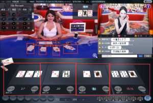 3.當閒家有投注某一普通注點但閒家選擇停牌而其他閒家選擇補牌時,繼續補的牌型不會顯示在停牌閒家界面,同時也不會加上該牌點數,當所有閒家補牌完成後,將為莊家補牌。